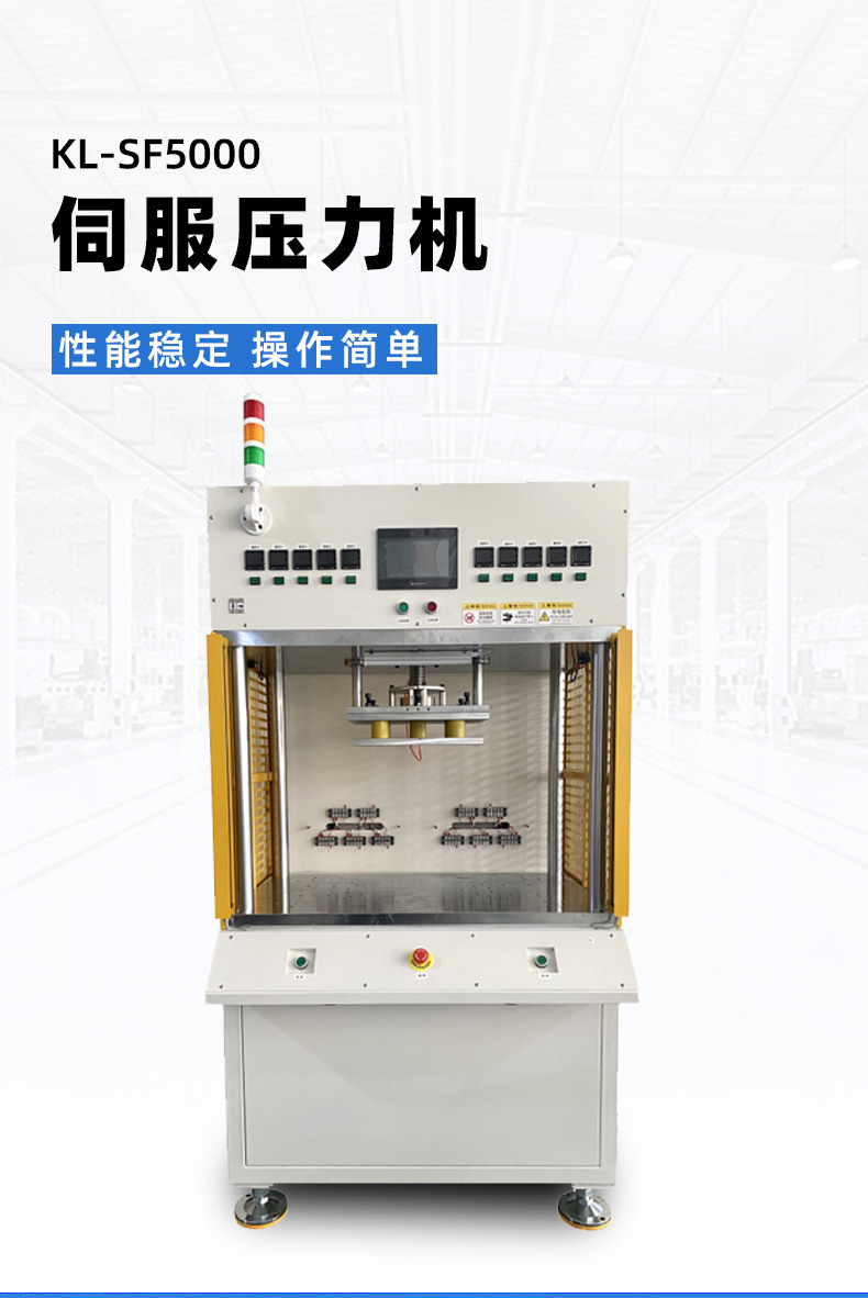 精密數(shù)控伺服電子壓力機簡稱伺服壓力機、電子壓力機,其工作原理是由伺服電機驅(qū)動H精度滾珠絲桿進行精密壓力裝配作業(yè),全程實現(xiàn)壓裝力與壓入深度的閉環(huán)控制。另可配置加熱、實時壓力曲線顯示、多工位、掃碼、自動化等功能。